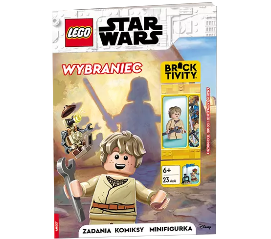 Książka zawiera nie tylko dynamiczną historię, ale też mnóstwo dodatków, które sprawiają, że lektura zamienia się w aktywną zabawę. Znajdziemy tu komiksy, zagadki i różnorodne zadania, które rozwijają spostrzegawczość i logiczne myślenie. Prawdziwą atrakcją jest jednak dołączony zestaw LEGO – minifigurka Anakina Skywalkera, droid techniczny oraz stacja naprawcza. Dzięki nim dziecko może od razu przenieść się do świata Star Wars i rozpocząć własną zabawę. „LEGO Star Wars. Wybraniec” to pełna akcji i humoru książka, która łączy czytanie z zabawą LEGO. Bogata w zadania, komiksy i ciekawostki, a przy tym wzbogacona o ekskluzywny zestaw klocków, stanowi świetny pomysł na prezent. x