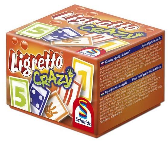 Każda gra w "Ligretto" to zwariowane wyzwanie. Wszyscy gracze jednocześnie próbują jak najszybciej pozbyć się swoich kart, wykładając je na stosy, na środku stołu. Jednak w "Ligretto Crazy" to zadanie jest jeszcze bardziej urozmaicone. Teraz na kartach znajdują się wartości przedstawione nie tylko za pomocą cyfr, ale również kostek, linii, słów i palców u rąk!