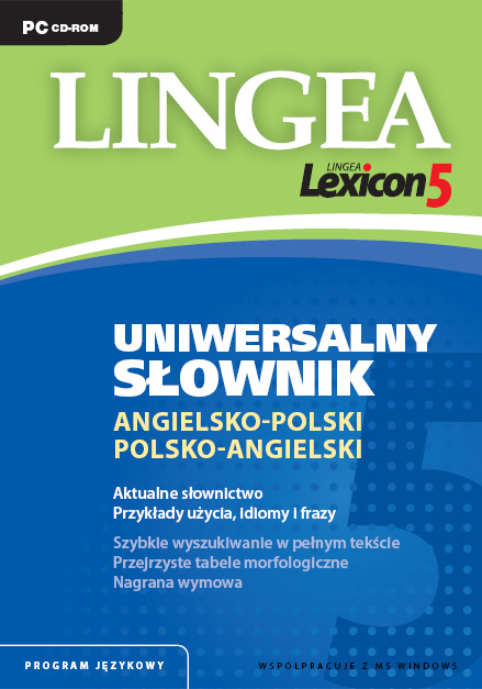 Słownik Lingea Lexicon 5 angielsko-polski i polsko angielski zawiera około 60 000 haseł, liczne przykłady, związki frazeologiczne oraz tabele odmian. Umożliwia odsłuchanie prawidłowej wymowy, zawiera zarys gramatyki, słownik użytkownika i rozbudowany słownik tematyczny. Lexicon 5 doskonale sprawdzi się w instytucjach szkolnych, państwowych oraz w firmach. Tłumaczenia wyświetlane są bardzo przejrzyście - kolorami zostały wyróżnione hasła główne, części mowy, rodzaje gramatyczne, przykłady rekcji czasowników oraz uwagi gramatyczne. Słownik podaje wersję brytyjską oraz amerykańską pisowni, czasowniki złożone, kolokacje, idiomy, przykłady, rejestry językowe oraz regionalizmy. Dla większej wygody, wszystkie powyższe informacje są wyróżnione czcionką i odpowiednio dobranymi kolorami. W lewym oknie programu są wyświetlane odsyłacze do słów powiązanych z hasłem głównym, na przykład synonimy, antonimy, przedrostki, czasowniki złożone czy wyrazy pochodne. Pozwala to nam na poszerzenie słownictwa i znalezienie najbardziej odpowiedniego tłumaczenia. Program wyświetla również przykłady, w których pojawiło się szukane słowo, w treści innych haseł. W ten sposób można dowiedzieć się, w jaki sposób szukanego wyrazu można użyć w połączeniu z innymi słowami. W odróżnieniu od większości słowników na rynku, w programie Lexicon nie jest konieczne wybieranie kierunku tłumaczenia. Aplikacja sama rozpoznaje język do którego należy dane słowo i wyświetla tłumaczenie. W przypadku wyrazów występujących w tej samej formie w obu językach, program automatycznie wyświetla tłumaczenie w obu językach. Słowo można wkleić z innej aplikacji w dokładnie takiej formie, w jakiej jest ono tam podane - niezależnie od przypadku lub czasu słownik odnajdzie szukany wyraz w formie podstawowej, np.. Po wpisaniu słowa went pokaże się odnośnik do hasła podstawowego go. Oprócz standardowego hasła, program Lexicon pokazuje również przykłady użycia danego słowa w kontekstach, idiomach czy kolokacjach. Dzięki temu można łatwiej opanować sposób użycia danego słowa w kontekście zdania. Lexicon umożliwia wyszukiwanie słów z użyciem znaków specjalnych – np.. Znak * umożliwia zastąpienie dowolnych liter w wyszukiwanym słowie – słownik wyszuka najbardziej odpowiednie wyrazy. Jeżeli wyraz zostanie wpisany błędnie (np.. Busines), Lexicon 5 zaoferuje jego najbardziej prawdopodobną, poprawną ortograficznie wersję (np.. Bussines). Słownik rozpoznaje wyrazy wpisane bez znaków diakrytycznych i od razu pokazuje odpowiednie hasło.Lexicon 5 oferuje możliwie najprostszą obsługę słownika, dzięki wyszukiwaniu w obie strony, możliwości wpisywania wyrazów w dowolnej formie gramatycznej oraz intuicyjnej obsłudze. Najwygodniejszym i najłatwiejszym sposobem wyszukiwania jest wykorzystanie funkcji mouse-over. Wystarczy tylko najechać kursorem na nieznany wyraz znajdujący się w oknie innego programu, a w oknie słownika od razu pokaże się jego tłumaczenie. Lexicon współpracuje m. in. Z takimi znanymi aplikacjami jak MS Word, Internet Explorer, Mozilla Firefox, Adobe Acrobat oraz GaduGadu.