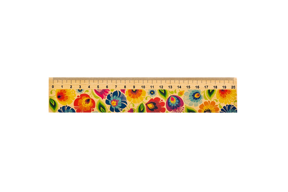 Drewniana linijka folk 25 cm z łowickimi motywami ludowymi
