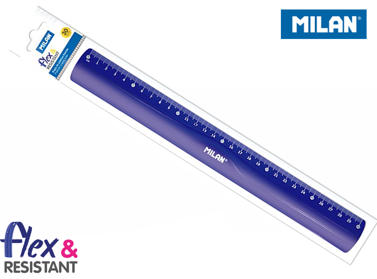 Linijka MILAN 30 cm. Wykonana z elastycznego materiału co utrudnia jej złamanie.