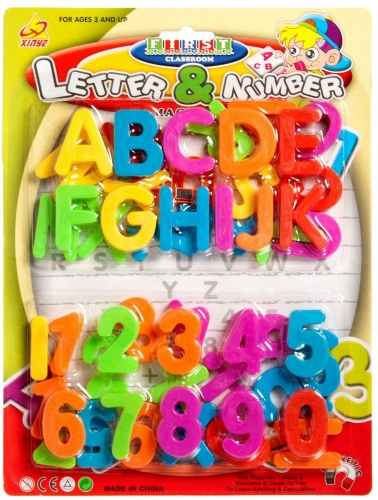 Kolorowe literki i cyferki z magnesem, które świetnie się przyklejają na lodówkę.