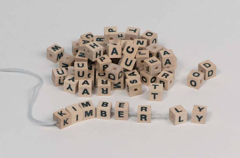 Z drewnianych klocków z literkami możesz układać słowa, zdania, a nawet cały wierszyk. Masz przecież do dyspozycji około 300 klocków! Możesz je układać na stole lub nawlekać na sznurek.