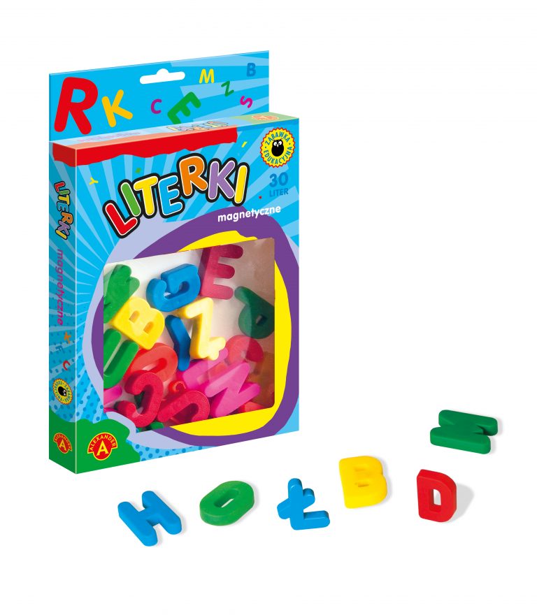 To kolorowe literki z magnesem, które świetnie się przyklejają na lodówkę. Dla dzieci kolorowe, przestrzenne i przyklejające się do metalu literki są atrakcyjne, a poznanie ich znaczenia i nauka pisania i czytania przy ich pomocy jest przyjemną zabawą.