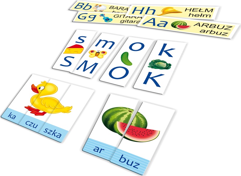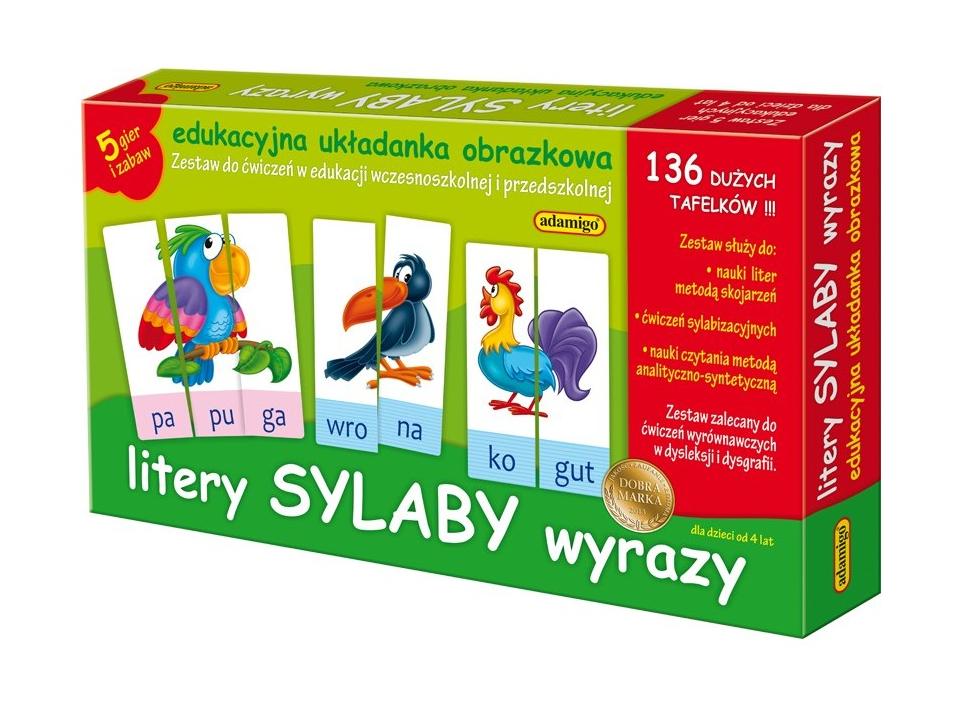 Litery sylaby wyrazy edukacyjna układanka obrazkowa