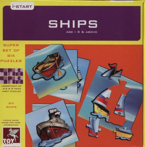 SUPER ZESTAW SZEŚCIU ŁODZI . Zestaw składa się z 6 obrazków ( puzzli) przedstawiających łodzie. Każdy z tych obrazków (puzzli ) składa się z - od 4 do 6 elementów. Każdy obrazek posiada odpowiadającą mu kształtem i wymiarami ramkę, w której powinien być ułożony przez dziecko.