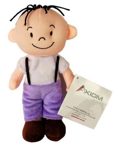 Pluszowy Lolek w wersji mini ma 17 cm i ubrany jest w białą koszulkę i spodnie na szelkach.