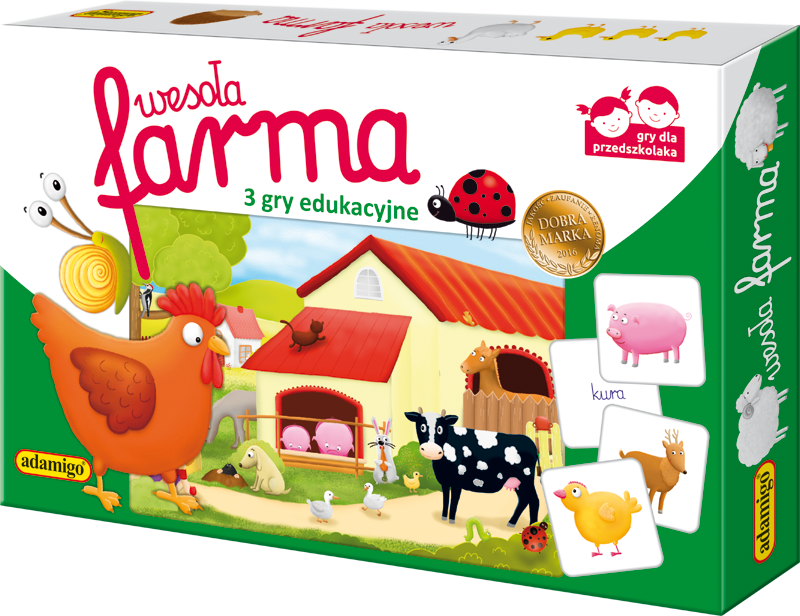 Opis produktuZasady bezpieczeństwaWesoła farma to gra, która doskonali analizę wzrokową, wyrabia spostrzegawczość, usprawnia procesy kojarzenia obrazu z nazwą i zapisem literowym. Ponadto to wspaniała zabawa, która wyzwala pozytywne emocje. Gra Wesoła farma umożliwia Twojemu dziecku poznanie zwierzątek, jakie możemy znaleźć na polskiej farmie lub wsi.