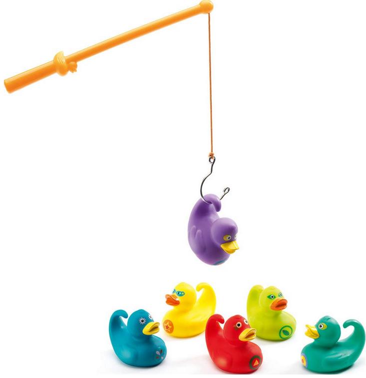 Komplet kolorowych kaczek oraz wędka to gwarantowana dobra zabawa! Spróbuj złowić je wszystkie! Kaczuszki świetnie sprawdzą się wannie podczas kąpieli jak i w pokoju na dywanie. Kaczki posiadają numerki, które mogą służyć jako punkty przy zabawie starszych dzieci. W zestawie znajduje się 6 różnokolorowych, gumowych kaczek oraz 2 wędki. Każda kaczka posiada zawinięty ogonek, za który zaczepia się haczyk. Maluch ćwiczy w ten sposób zręczność dobrze się przy tym bawiąc. Całość zapakowana jest w tubę, fajnie sprawdzi się jako prezent. Wymiary: 49 x 9,5 cm.