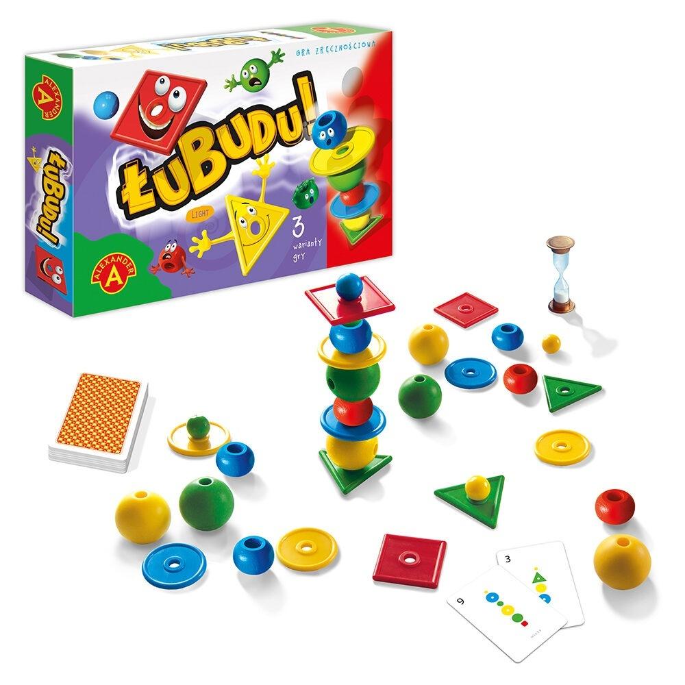 Opis produktuZasady bezpieczeństwaŁUBUDU to gra zręcznościowa w 3 wariantach. Zadaniem jej uczestników jest zbudowanie wieży z plastikowych elementów o różnym kształcie i wielkości. W zależności od wariantu gry wygra ten, kto najszybciej ułoży określony wzór wieży lub kto zbuduje najwyższą wieżę. Gra jest niezwykle emocjonująca, uczy cierpliwości, precyzji, zręczności i opanowania. Zawartość opakowania