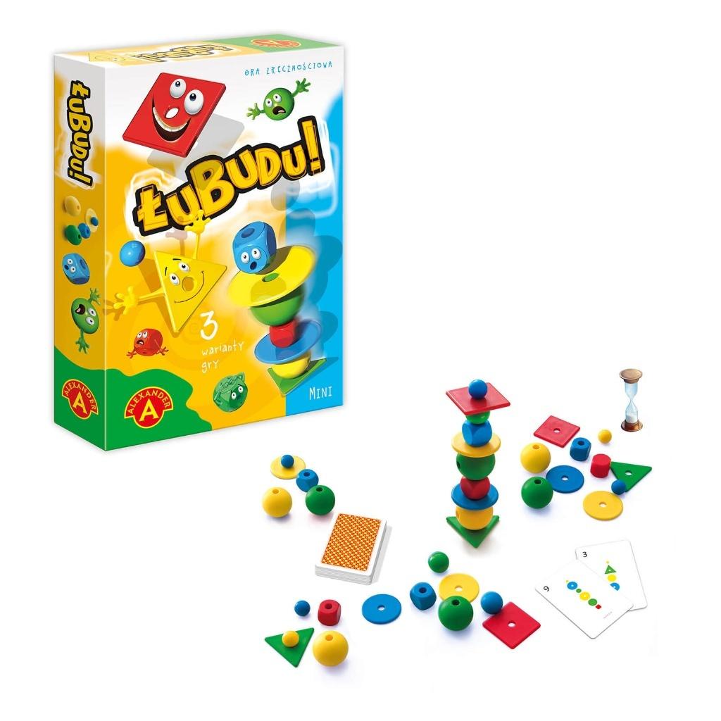 Opis produktuZasady bezpieczeństwaŁUBUDU to gra zręcznościowa w 3 wariantach. Zadaniem jej uczestników jest zbudowanie wieży z plastikowych elementów o różnym kształcie i wielkości. W zależności od wariantu gry wygra ten, kto najszybciej ułoży określony wzór wieży lub kto zbuduje najwyższą wieżę. Gra jest niezwykle emocjonująca, uczy cierpliwości, precyzji, zręczności i opanowania. Zawartość opakowania
