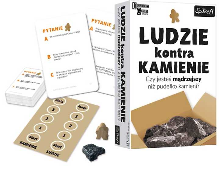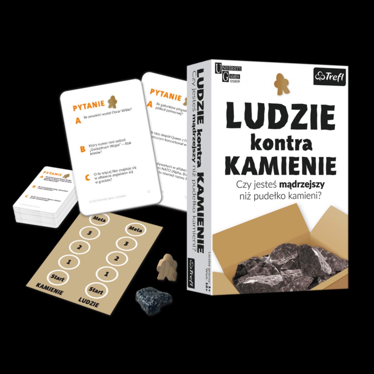 Ludzie kontra kamienie to nowa, quizowa gra rodzinna. Pobierz kartę, odczytaj pytanie, potrząśnij pudełkiem! Kto udzielił prawidłowej odpowiedzi: Ty czy kamienie? Ta szybka gra quizowa pomoże znaleźć odpowiedź na pytanie: Czy jesteś mądrzejszy niż pudełko kamieni?