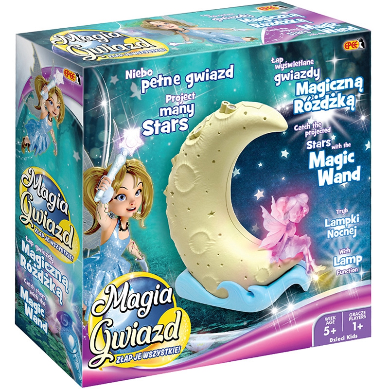Opis produktuZasady bezpieczeństwaMagia Gwiazd to fantastyczna gra zręcznościowa bazująca na mechanizmie popularnego Łowcy Duchów. KSIĘŻYCOWY PROJEKTOR UKOŁYSZE CIĘ DO SNU! W trybie LAMPKI NOCNEJ emituje delikatne światło i ODTWARZA KOŁYSANKI! Magia Gwiazd to fantastyczna gra, która korzystnie wpływa na rozwój umiejętności zręcznościowych oraz sprytu dziecka, a także - dzięki przepięknej, bajkowej scenerii wyświetlanej na ścianach pokoju - wspiera proces oswajania się z ciemnością. By ułatwić dziecku zasypianie, projektor z zestawu można przełączyć w tryb lampki nocnej, która emituje delikatne światło i odtwarza wyciszającą muzykę. W trybie lampki nocnej projektor wyłącza się automatycznie po 10 minutach. Zawartość opakowania: - 1 różdżka ze światłem i dźwiękiem - instrukcja obsługi Produkt wymaga 3 baterii AA i 3 baterii AAA (niezawarte w zestawie). x