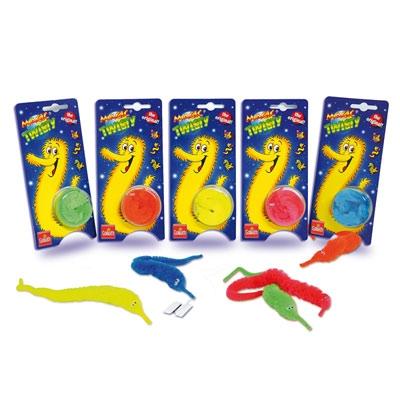To Skacze! Wije się! I pełza! Magic Twisty, magicznie ożyje w Twoich rękach! Zabawny stworek, który może być Twoim przyjacielem dzięki niemu znajdziesz się w centrum uwagi podczas każdego spotkania towarzyskiego. Działa na ludzi w każdym wieku! Zaimponuj rodzinie i znajomym! Najważniejszenie zapomnij się dobrze bawić! Dostępny w 5 kolorach! Zbierz całą rodzinkę.