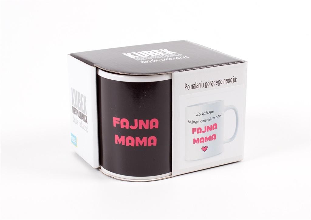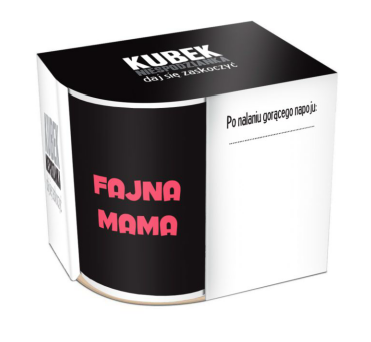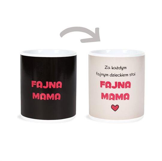 Magiczny kubek z napisem, który zmienia swoją kolorystykę pod wpływem nalania gorącego napoju.