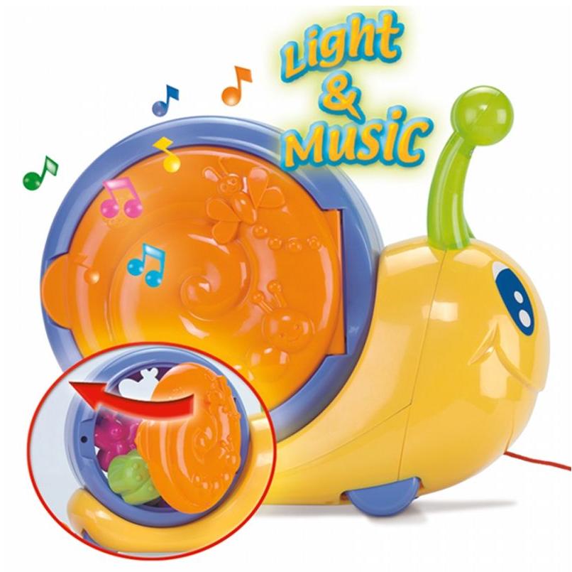 Zabawka do ciągnięcia w kształcie ślimaka ze światłem, dźwiękiem i sorterem.