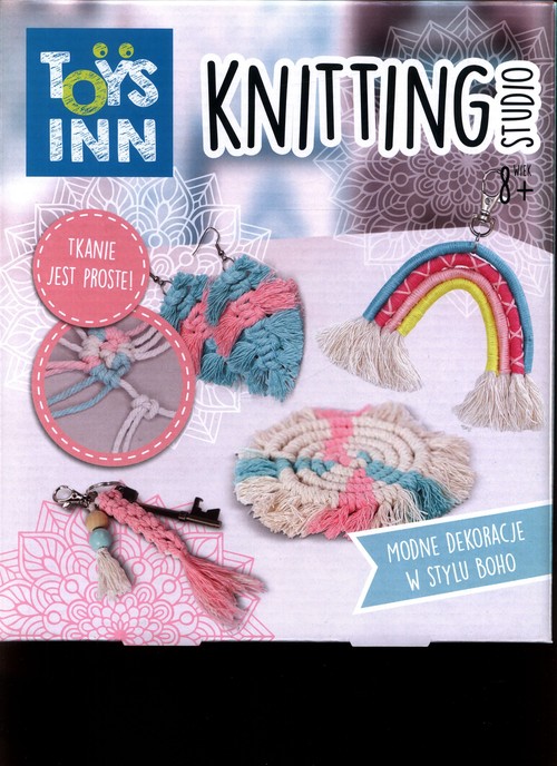 Opis produktuZasady bezpieczeństwaPobudź swoja wyobraźnię i zawiązując, przeplatając sznurki wykonaj różne, niepowtarzalne ozdoby np. kolczyki lub brelok. Zestaw zawiera: bawełniany sznurek w 3 kolorach, nici w 4 kolorach, 2 drewniane koraliki, 2 zawieszki do kolczyków, metalowe kółko do breloka, 4 metalowe kółeczka, 2 metalowe zapinki, plastikową igłę, instrukcję. x