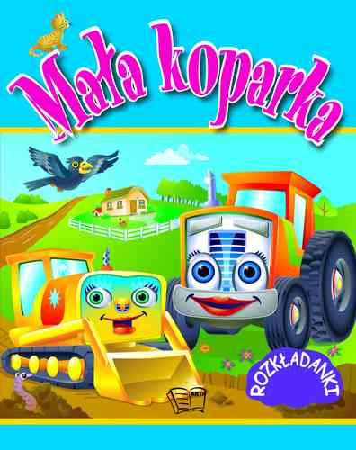Mała koparka i duży traktor pomagają zbudować drogę.
