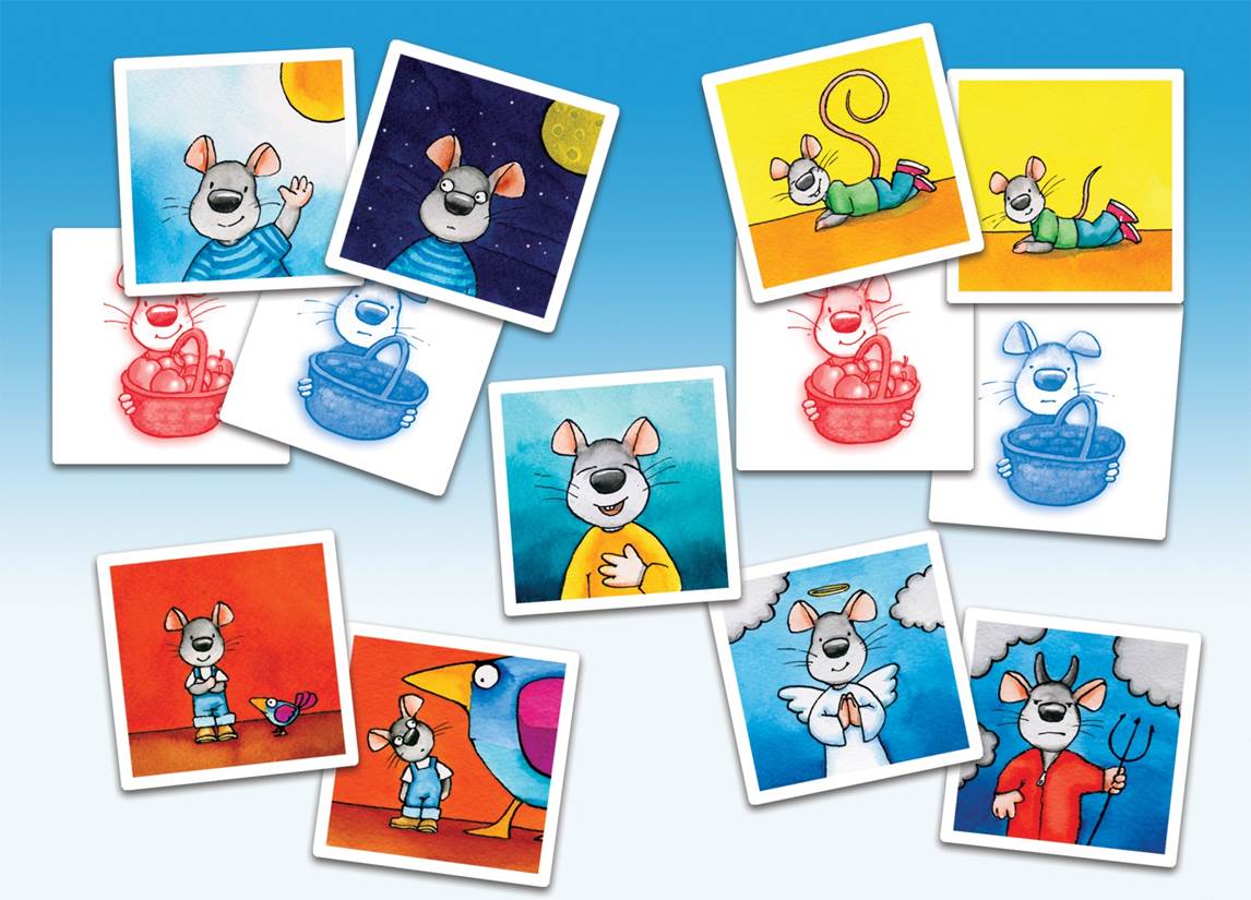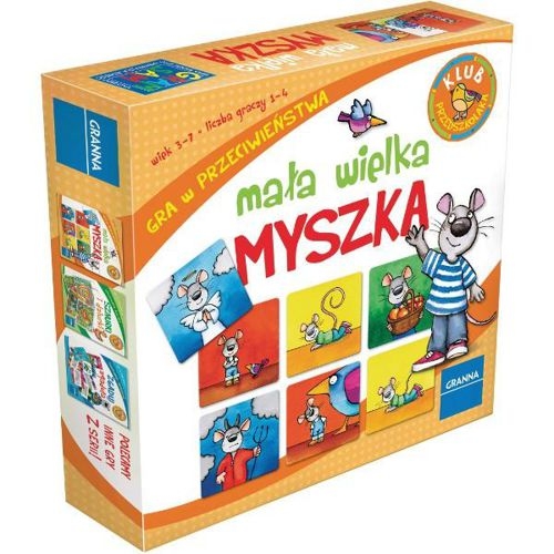 Prosta gra edukacyjna w przeciwieństwa, której bohaterką jest myszka. Raz jest mała, raz wielka, raz wesoła, raz smutna. wiek: 3-7 liczba graczy: 1-4