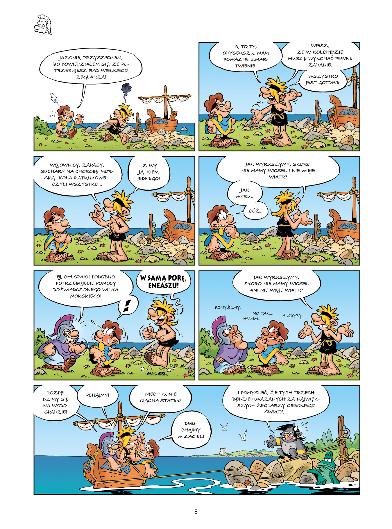 Czternasta część humorystycznej opowieści o kandydatach na bogów i herosów starożytnego Olimpu. Wszyscy znamy mit o wyprawie Jazona po złote runo. A jak było w rzeczywistości? Wesoły żarłok Taurusek towarzyszy niespecjalnie bystrym Argonautom w rejsie do Kolchidy, gdzie czeka cudowne futro złotego barana. Czy Jazon spisze się jako heros i przywódca wojowników? Jak już wiemy z komiksowych opowieści o małych bogach, bohaterowie tacy jak Herakles, Odyseusz czy właśnie Jazon rzadko bywali odważni i mądrzy... I dlatego Tauruskowi nie zabraknie tematu do żartów!