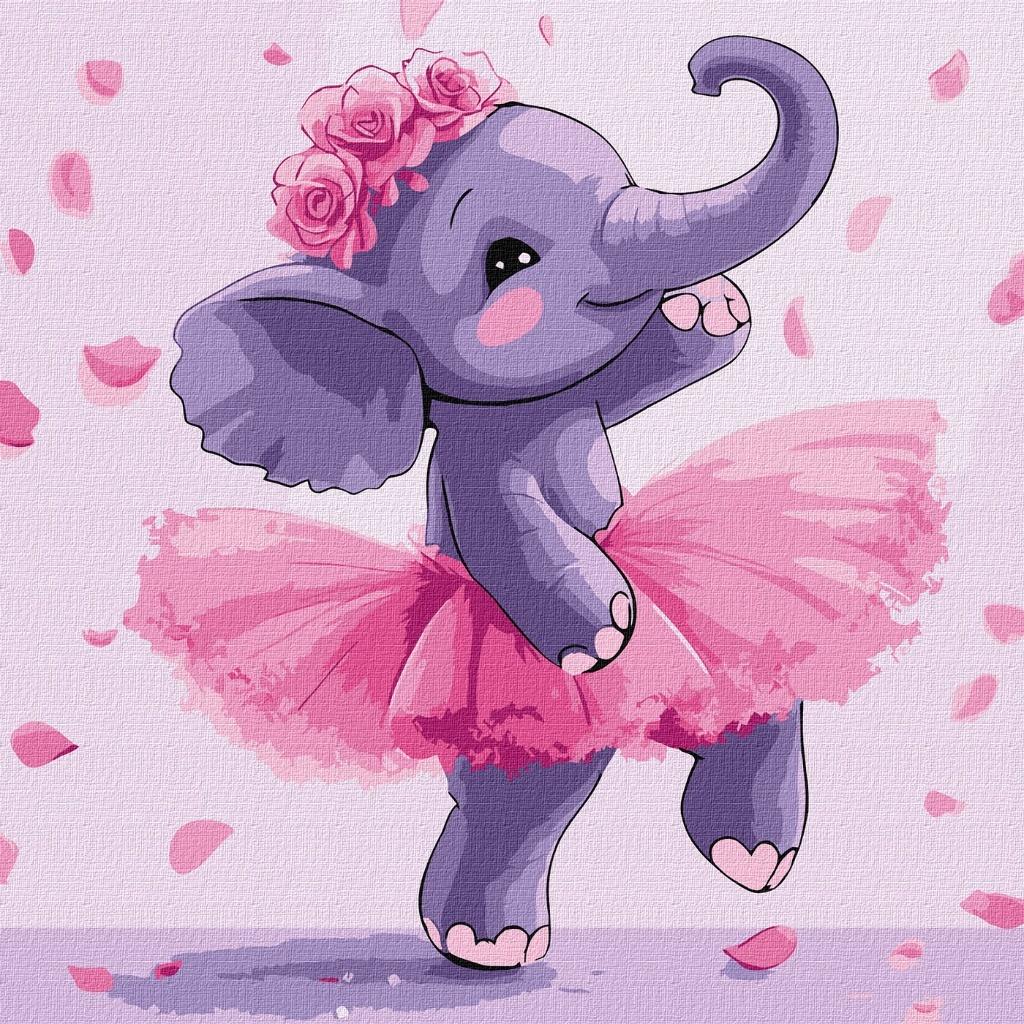 Malowanie po numerach - Baletnica słoń 30x30cm
