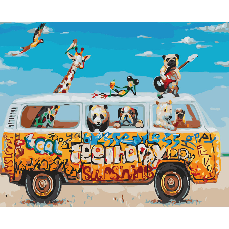 Malowanie po numerach 40x50cm Zwierzątka w busie