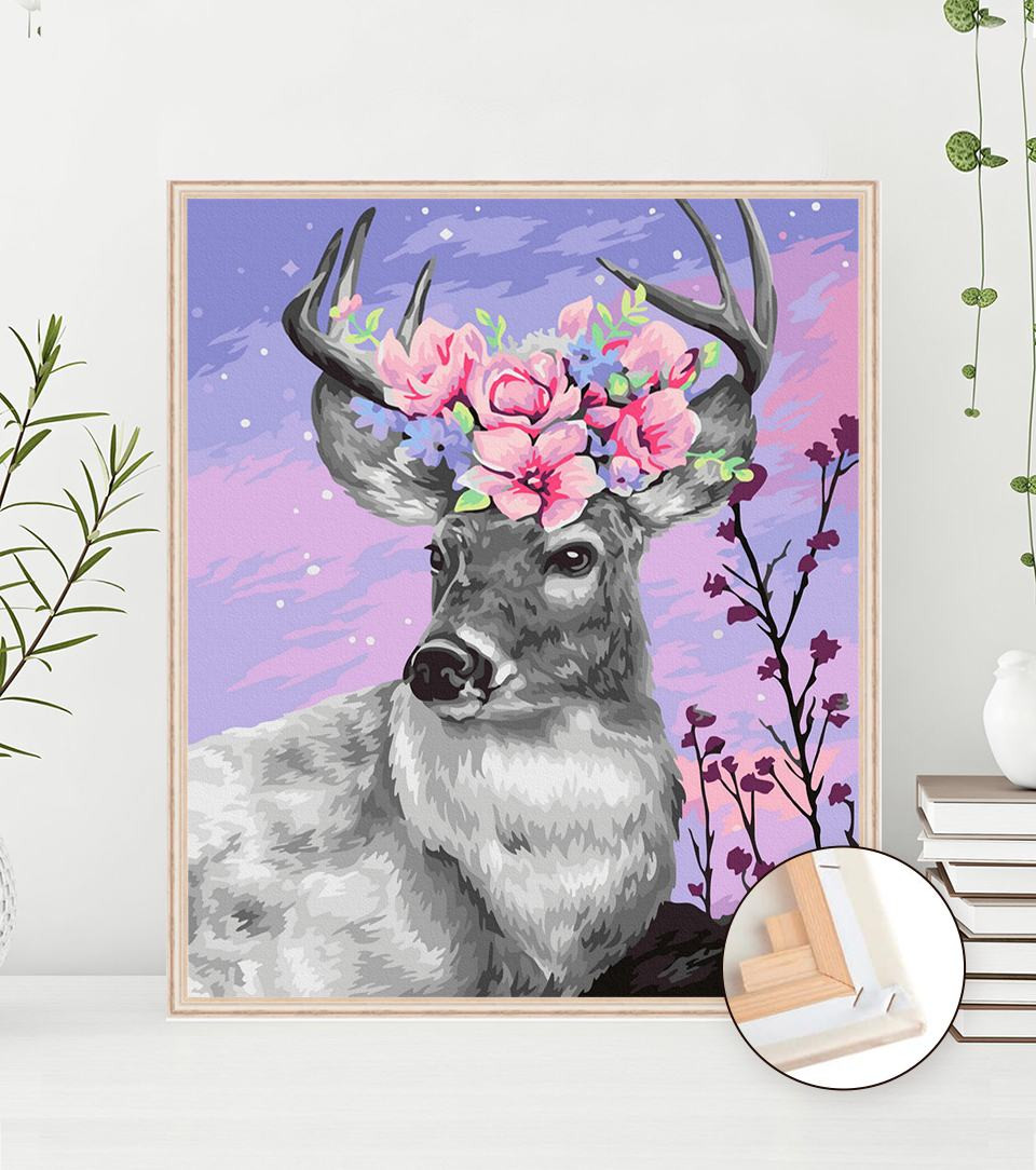 Malowanie po numerach - Jeleń w różowych.. 40x50cm