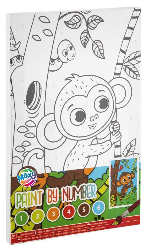 Malowanie po numerach, wzór Małpka.Obrazek o wymiarach 30 x 20 cm. Wzór nadrukowany na płótnie,w zestawie 6 kolorów farbek i pędzelek.