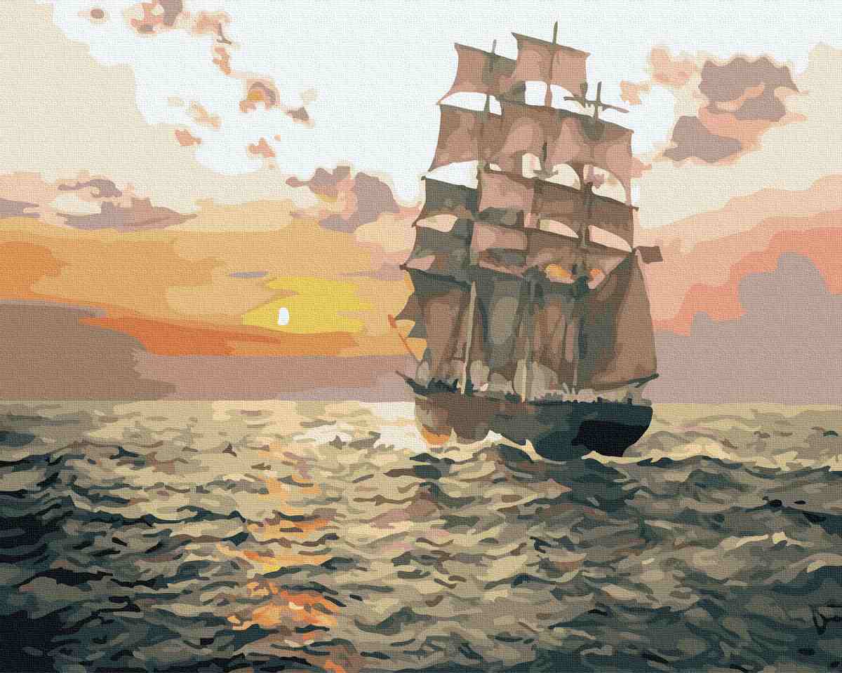 Malowanie po numerach - Żaglówka o zachodzie 40x50