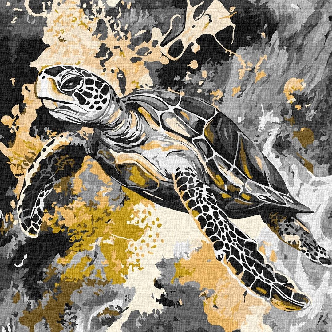 Malowanie po numerach - Złoty żółw metal 40x40cm