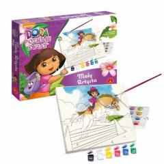 Chwyć za pędzel i zostań artystą: namaluj na podobraziu Dorę. Dobierz pasujące kolory farb i wypełnij nimi kontury.