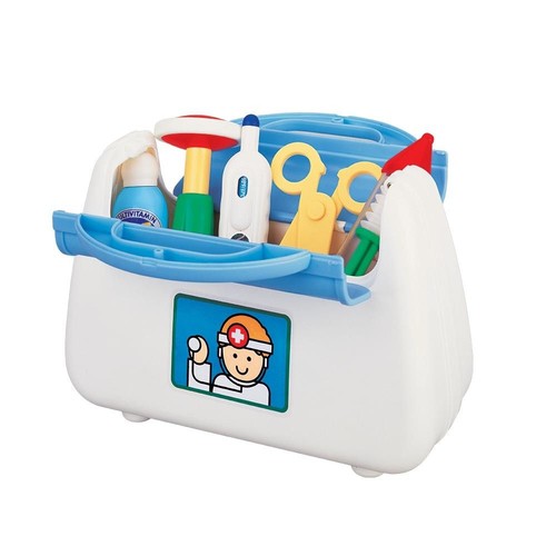 Zestaw zawiera niezbędne akcesoria medyczne potrzebne podczas zabawy takie jak: torba lekarska, stetoskop, bezpieczne nożyczki, strzykawka, termometr, ciśnieniomierz, lekarstwa, książeczka zdrowia. Podczas badania mały lekarz usłyszy bicie serca lub kaszel pacjenta. Termometrem zmierzy gorączkę, może dać zastrzyk lub zmierzyć choremu ciśnienie.