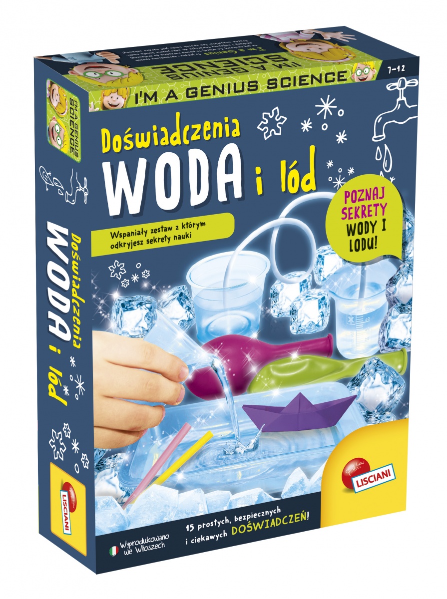Mały Geniusz Doświadczenia z wodą i lodem to zestaw 15 prostych, bezpiecznych i ciekawych doświadczeń, dzięki którym odkryjemy sekrety nauki. Wykonaj eksperymenty takie jak: skaczące rodzynki, poziom wzroku, bańki lodu, lodowa meduza i wiele więcej!