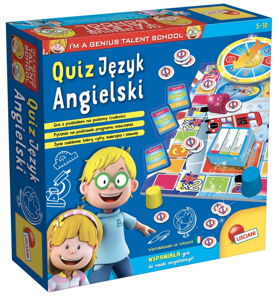 Gra rozwijająca słownictwo i wiedzę z języka angielskiego. W grze odpowiadamy na pytania i przesuwamy swój pionek po planszy, zdobywając przy tym specjalne odznaki. Quiz z pytaniami został przygotowany na podstawie programu nauczania w szkole podstawowej i jest podzielony na trzy poziomy trudności. Opakowanie zawiera instrukcję. x