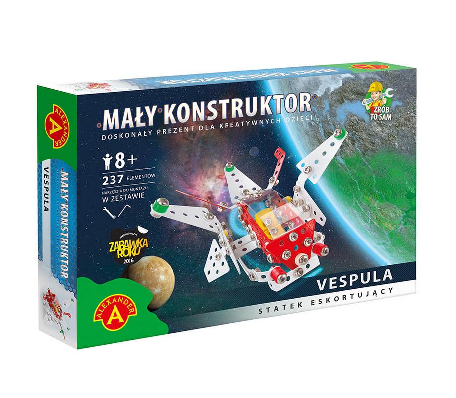 Mały Konstruktor to zabawka do samodzielnego montażu. Każdy model składa się z różnej wielkości i kształtów elementów metalowych, a także jest wzbogacony kolorowymi elementami z tworzyw sztucznych. Zestaw wyposażony jest w narzędzia, którymi można skręcić i rozkręcić pojazd. Elementy zestawów można ze sobą łączyć tworząc własne konstrukcje. Zabawki z tej serii rozwijają zdolności manualne, wyobraźnię przestrzenną, umiejętności techniczne i cierpliwość oraz pomagają kształtować proces zapamiętywania. To idealna zabawka dla przyszłych inżynierów i nie tylko.