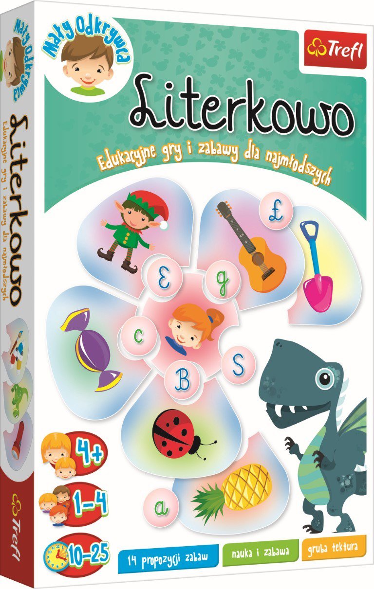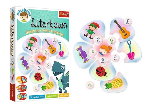 Literkowo to wesoła zabawa w dopasowywanie literek i wyrazów do obrazków w nowej, innowacyjnej formule. W ciekawy i angażujący sposób rozwija słownictwo u najmłodszych dzieci, uczy rozpoznawania liter i kojarzenia ich z nazwami przedmiotów, pomaga także rozwijać umiejętność budowania poprawnych odpowiedzi. W grze wykorzystano słownictwo związane z otoczeniem i zainteresowaniami dzieci zilustrowane w kolorowy i czytelny dla nich sposób, a także litery pisane, dające dobry wzorzec w przyszłej edukacji wczesnoszkolnej. Dostarcza wielu pomysłów na zabawę - dziecko ma możliwość gry w pojedynkę, jak również w grupie rówieśników lub z opiekunem.