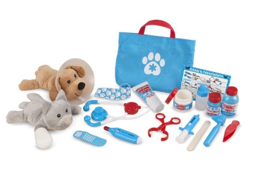 Gdy mały kotek źle się czuje potrzebuje fachowej opieki weterynarza. Sprawdź mu temperaturę, posłuchaj serduszka, zdiagnozuj co jest nie tak. Na koniec podaj lekarstwo. Hura! Kotek czuje się lepiej. Z zestawem weterynarza możesz otworzyć prawdziwą lecznice dla zwierząt. Zestaw zawiera wszystko co potrzebne. Nawet dwóch sympatycznych pacjentów. Kotka i Pieska. Nie czekaj. Spraw by Poczuli się lepiej.