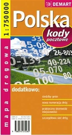 Mapa drogowa POLSKA + Kody Poczt. 1:750 000 DEMART