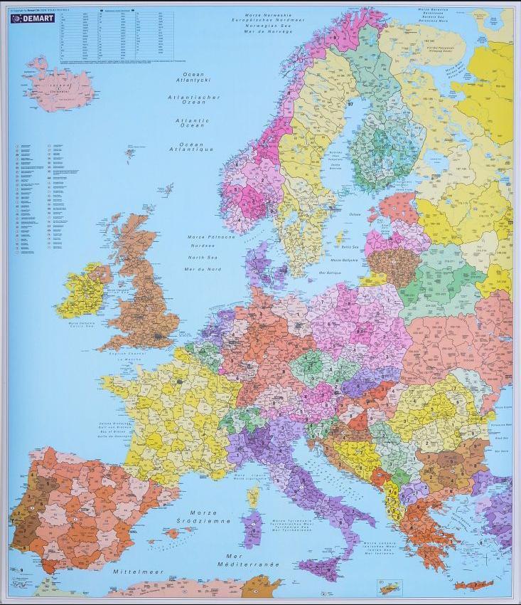Mapa ścienna Europy. Kody pocztowe 1:3,4 mln