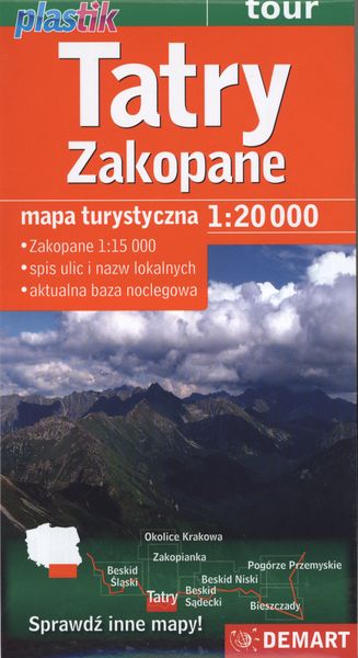 Mapa turystyczna w skali: 1:20 000 Zawiera: Zakopane w skali 1:15 000 spis ulic i nazw lokalnych aktualną bazę noclegową