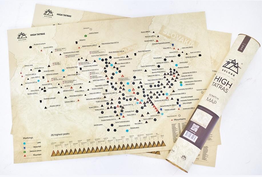 Kompaktowa wersja mapy zdrapki Mountain Peaks High Tatras prezentująca szczyty Tatr Wysokich.