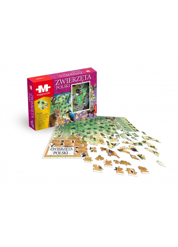 Opis produktuZasady bezpieczeństwaKolejne puzzle z serii, która cieszy się dużym zainteresowaniem dzieci i rodziców, bo to nie tylko świetna zabawa, ale także wiedza, która niepostrzeżenie sama wchodzi do głowy. Elementy puzzli odwzorowują kształt krain geograficznych oraz zwierząt i pomnikowych drzew Polski. Dziecko przez zabawę poznaje geografię Polski, uczy się nazw krain geograficznych, zdobywa wiedzę o pomnikowych drzewach i zwierzętach zamieszkujących polskie łąki, mokradła i lasy. W krótkich opisach zawarto informację o ich cechach charakterystycznych, trybie życia oraz ewentualnym zagrożeniu dla gatunku. Puzzle zawierają też mapę polskich parków narodowych, na której przedstawiono ich zasięgi i godła. Krótka charakterystyka każdego parku uzupełniona jest ilustracjami.