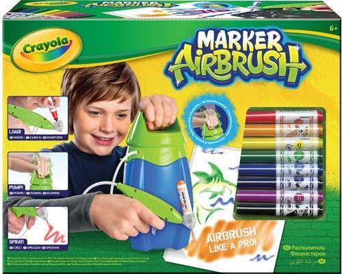 Jak to działa?Crayola od lat wprowadza dzieci w świat kreatywnego malowania. Tym razem pomoże w tym prosta pompka, tworzy ciśnienie i rozpyla tusz markera. Młodzi artyści mogą eksperymentować i tworzyć nieskończone ilości cienkich i grubych wzorów. Twoje dziecko będzie zachwycone możliwościami, jakie dajeMarker Airbrush!Zestaw zawiera 4 szablony z oryginalnymi wzorami, które pomogą dziecku podczas malowania. Różnorodna tematyka szablonów - od podwodnego świata aż po podróże międzyplanetarne inspiruje do twórczego działania.Dziecięca aktywność wystarczy by wprawić w ruch Airbrusha!Prosty projekt pompki, sprawia żeMarker Airbrushnie wymaga użycia baterii!Wystarczy wetknąć marker w końcówkę urządzenia, napompować Airbrusha, nacisnąć spust i... zaczynamy kolorowanie!Urządzenie łatwe do czyszczenia - po skończonej zabawie trzeba jedynie oczyścić końcówkę Airbrusha, płucząc ją wodą. Tusz markera nie przedostanie się do innych elementów zabawki, więc czyszczenie jest wyjątkowo proste!Użyj Markerów do Tkanin! Wykonaj piękne wzory na koszulce lub innej części ubioru za pomocąAirbrusha i Markerów do Tkaninod Crayoli. Wykorzystaj jasne kolory, rozprowadź je na materiale, a następnie wysusz. To naprawdę łatwe, a przynosi super efekty!Zestawu Marker Airbrush od Crayoli możesz używać z większością flamastrów Crayoli.