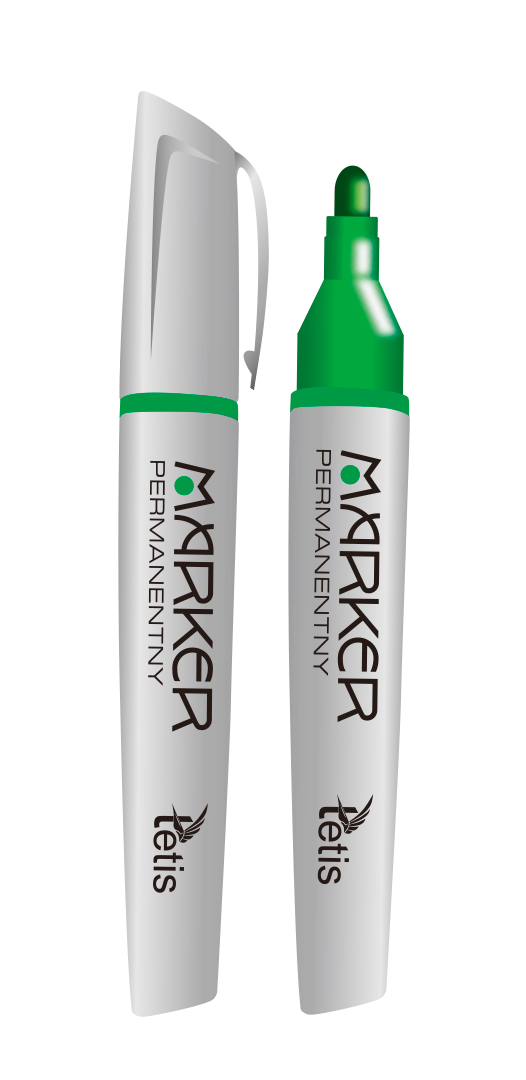 Marker permanentny z końcówką stożkową. Grubość linii pisania 3mm. Wodoodporny, szybkoschnący, trwały, odporny na blaknięcie, nietoksyczny tusz na bazie alkoholu. Przeznaczony do pisania na wszelkiego rodzaju powierzchniach. Nie zawiera ksylenu i toluenu. Opakowanie: pudełko 12 sztuk