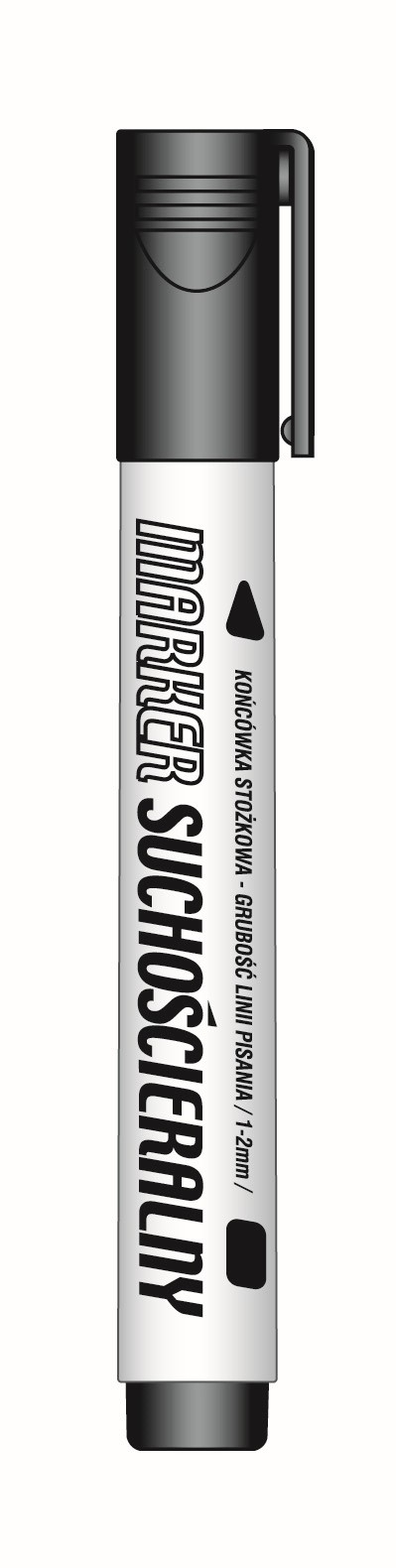 Marker przeznaczony do tablic suchościeralnych. Zawiera wysokiej jakości nietoksyczny tusz na bazie alkoholu, który jest łatwy do starcia z tablicy nawet po kilku dniach. Nie rysuje powierzchni. Bezpieczna skuwka. Odporna na złamania końcówka. Nie zawiera ksylenu i toluenu. Opakowanie: pudełko 12 sztuk.