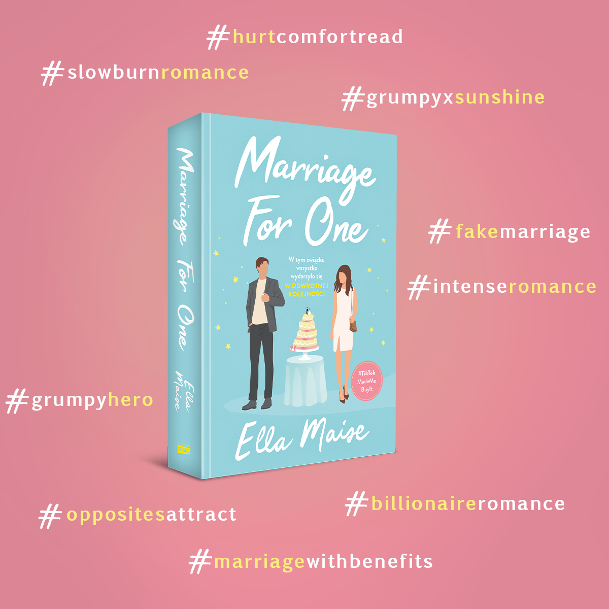 Opis produktuZasady bezpieczeństwaNAJGORĘTSZY #SLOWBURN ROMANS TEGO ROKU Jack i ja zrobiliśmy wszystko dokładnie na odwrót. Dzień, w którym zwabił mnie do swojego biura, był jednocześnie dniem naszego pierwszego spotkania i naszych zaręczyn. Magia chwili i huk otwieranego szampana? Nie Jack Hawthorne wcale nie przypominał narzeczonego moich marzeń. Byłam zła i winiłam go za wszystko. Za swoją bezbronność i zamroczenie. Za jego błękitne oczy, za przepastne spojrzenie wycelowane wprost we mnie. Za układ, w który mnie wmanewrował. W jednej sekundzie był dla mnie nikim. W następnej stał się wszystkim. W jednej sekundzie był nieosiągalny. W następnej wydawał się całkowicie mój. W jednej sekundzie myślałam, że jesteśmy zakochani. W następnej - że to tylko kłamstwo. Wpadłaś w kłopoty, Rose. W końcu czego się po sobie spodziewałaś? Książka, którą pokochały twitterowe książkary i booktokerki na całym świecie! #TikTokMadeMeBuyIt AUTORKA o sobie Pisanie stało się moim światem i nie wyobrażam sobie, że mogę robić coś innego niż dawać życie nowym bohaterom i nowym historiom. Są rzeczy, dzięki którym jesteśmy naprawdę szczęśliwi - dobra książka, szczeniaczek, przytulenie kogoś, za kim się strasznie tęskniło. To właśnie daje mi pisanie. Mam nadzieję, że czytanie moich książek również Was uszczęśliwia. Wszystko, co chcielibyście wiedzieć o mnie i moich książkach, znajdziecie na mojej stronie internetowej. Bardzo bym chciała Was tam zobaczyć! Opinie czytelniczek "Jedna z tych książek, które zapierają dech w piersiach. Mogę tylko powiedzieć: PRZECZYTAJ TO!" JennySteamy Reads Blog "Marriage For One to uzależniający slowburn romans. Ta książka całkowicie mnie pochłonęła. To emocjonalna, piękna historia. Nie mogłam się od niej oderwać i nie mogę się doczekać kolejnych książek Elli!" MELISSA *Mel Reader* "Jakże piękny, namiętny, chwytający za serce romans! Nigdy nie zapomnę tej historii. Opowieść o Jacku i Rose całkowicie mną zawładnęła. () Wspaniała lektura. Rozkoszny, zachwycający slowburn romans. Genialna historia! Ella Maise mnie zachwyciła! NAJLEPSZA KSIĄŻKA ROKU. Jedna z moich ULUBIONYCH książek. PIĘĆ ZYLIARDÓW GWIAZDEK!" Angie - Angie's Dreamy Reads "Ta książka jest tak słodka i poruszająca! <3 Podoba mi się cała, od początku do końca. () Siedzę teraz i żałuję, że w moim życiu nie ma Jacka Hawthorne'a, który zaoferowałby mi małżeństwo w interesach. Jeśli masz ochotę na wciągający romans z uroczymi postaciami, ta książka jest zdecydowanie dla Ciebie". Ri #grumpyxsunshine #slowburnromance #marriagewithbenefits Recenzje:✖ Opinia niepotwierdzona zakupem
