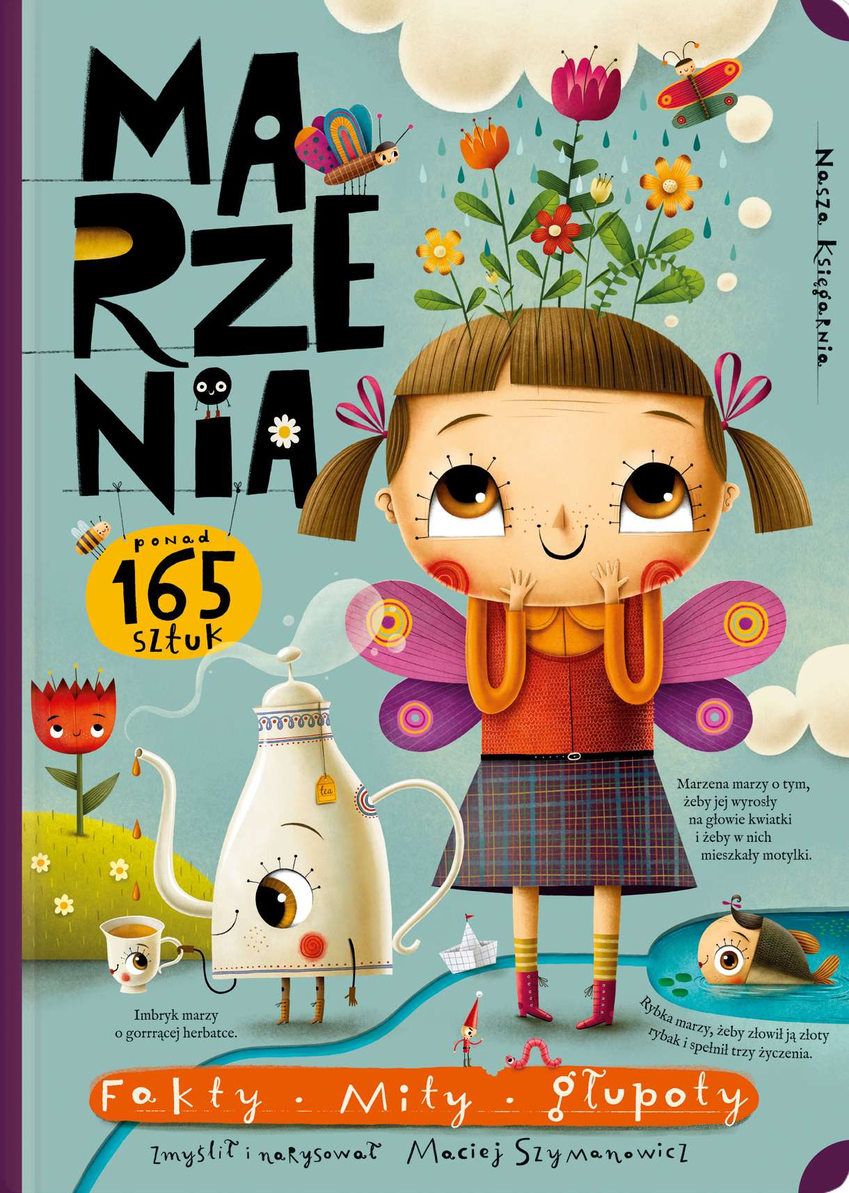 Niezwykły zbiór informacji na temat marzeń! Niniejsza książka pomoże znaleźć odpowiedzi na wiele nurtujących pytań związanych z marzeniami, takich jak chociażby: Jakie są rodzaje marzeń? Czy szklanki marzą, a jeśli tak, to o czym? Skąd się biorą marzenia? Jak kartonowe pudła pomagają w marzeniu? O czym marzą domy, wieloryby i pomniki? Do czego mogą się przydać palec wskazujący i mapa? Które pozycje ciała sprzyjają marzeniom? Jakie są wymarzone rośliny i zwierzęta? O czym marzą cyfry i litery? Na szczegółowych ilustracjach obejrzycie marzenia wielkie i niewielkie, praktyczne i bezsensowne, marzenia kuchenne, a także samozbierające się grzyby, dżdżownicę w tubce czy samochód z dwiema kierownicami. Jedno jest pewne: ta książka marzy, byście ją przeczytali! Maciej Szymanowicz w dzieciństwie kochał rysować, ale studiować postanowił na białostockim wydziale lalkarskim Akademii Teatralnej. Został aktorem lalkowym, ale to zajęcie nie przypadło mu do gustu. Powrócił do miłości z dzieciństwa. Ilustruje, projektuje książki, tworzy plakaty teatralne i gry planszowe. W 2014 wydał autorską książkę „Najmniejszy słoń świata”. Za ilustracje do książki „Asiunia” otrzymał Nagrodę Miasta Stołecznego Warszawy (2011), a za „Wszystkie moje mamy” nagrodę w konkursie Przecinek i Kropka oraz nagrodę Festiwalu Literatury dla Dzieci (2014), a autorskie „Krasnoludki” przyniosły mu nominację w konkursie Najpiękniejsze Książki Roku 2018 PTWK oraz wyróżnienie w XVII edycji konkursu Świat Przyjazny Dziecku. Powyższy opis pochodzi od wydawcy.