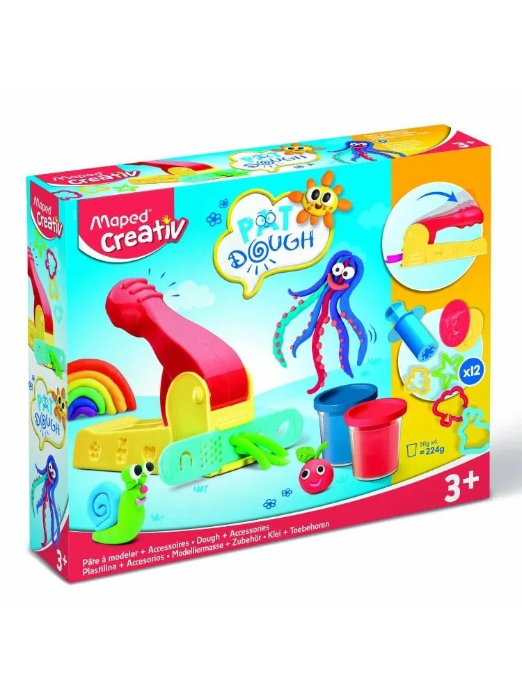 Opis produktuZasady bezpieczeństwaZ miękką, nieklejącą masą plastyczną Maped Creativ naprawdę można kreatywnie zaszaleć. Ulepisz praktycznie wszystko co przyjdzie Ci do głowy. Kolorowe akcesoria uatrakcyjnią zabawę: prasa do wyciskania 10 różnych wzorów, 4 formy do wyciskania kształtów, nożyk, 2 owalne pieczątki. Zabawa z masą rozwija zdolności manualne dzieci. Ćwiczenie mięśni małych rączek jest ważnym etapem przygotowującym najmłodszych do nauki pisania. Transparentne pojemniki 56 g umożliwiają podgląd zawartości bez otwierania.