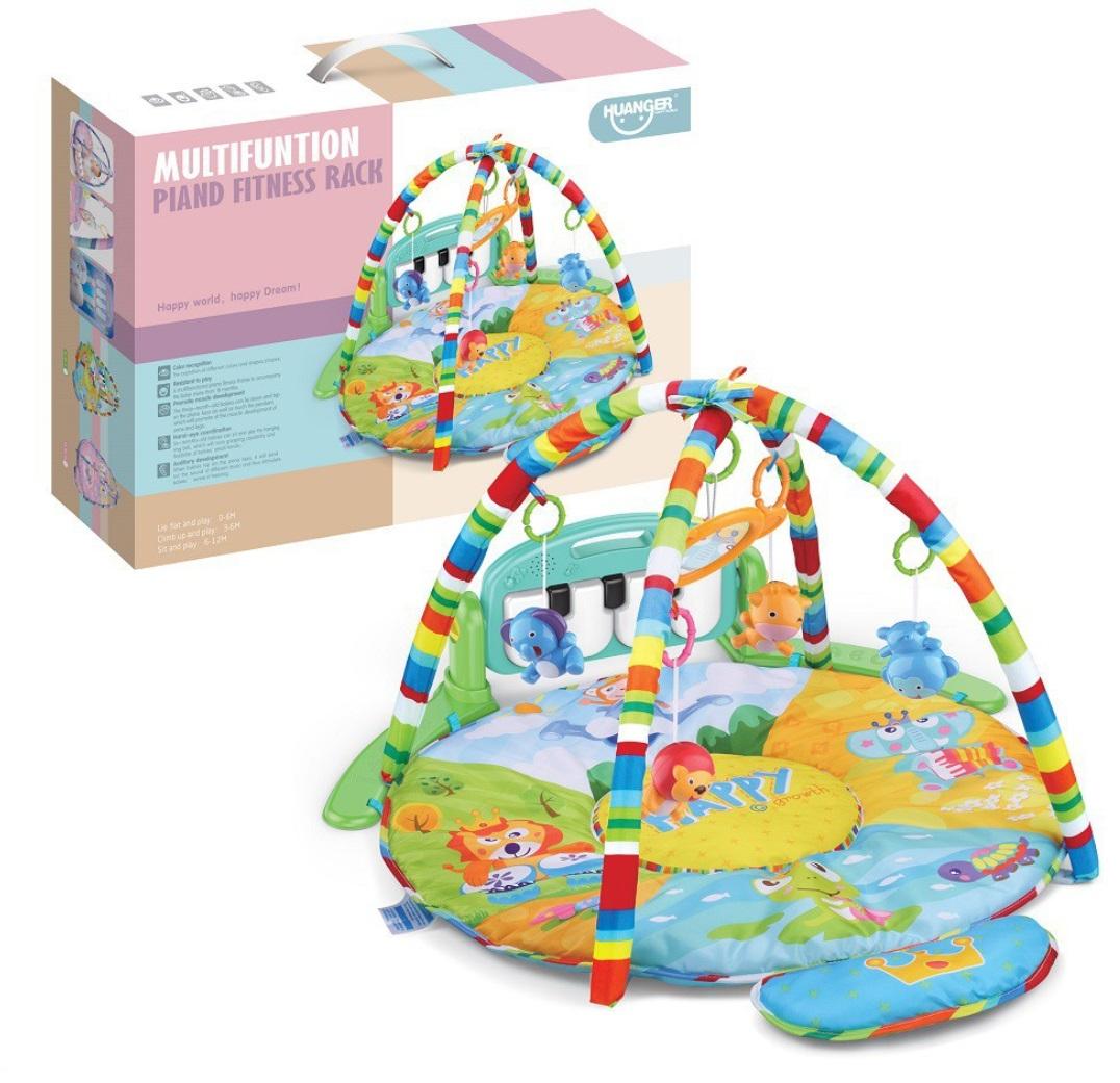 Centrum zabaw, mięciutka pastelowa mata edukacyjna z pianinkiem i zabawkami. Mata z 2 pałąkami. W zestawie lusterko i interaktywne pianinko oraz grzechotki i gryzaki.