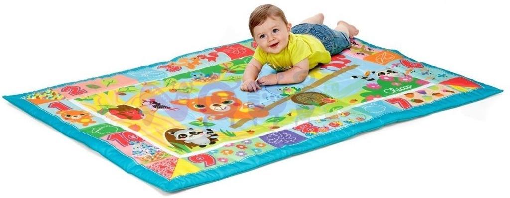 Leżąc na brzuszku maluch odkryje wiele ciekawych atrakcji! Kolorowe obrazki z wesołymi zwierzątkami przykują jego uwagę i zachęcą do dalszego odkrywania. Mata posiada specjalne pętelki, na których możemy przymocować ulubione grzechotki i pluszaki naszego malucha. Urozmaici to jeszcze bardziej jego zabawę, a możliwość różnych konfiguracji zapewni, że szybko się nie znudzi!
